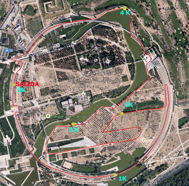 El lugar de salida y meta de la carrera estará ubicado en el Parque Juan Carlos I, concretamente en la explanada situada frente a la Avda. de Dublín, tal como se describe en el plano.